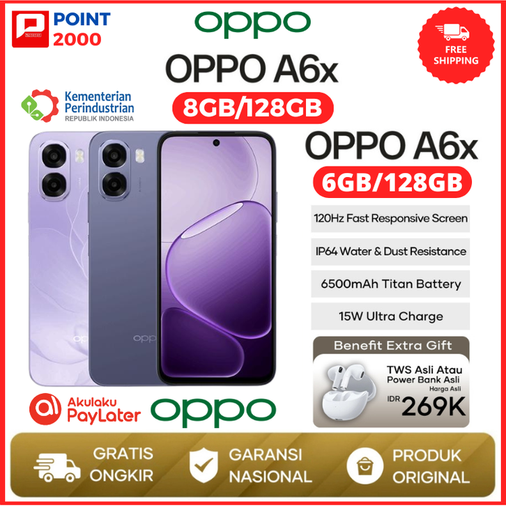 (Best Seller) OPPO A6x 6/128GB - Garansi Resmi - [IP64 Water & Dust Resistance, 6500mAh Large Battery, Snapdragon 685