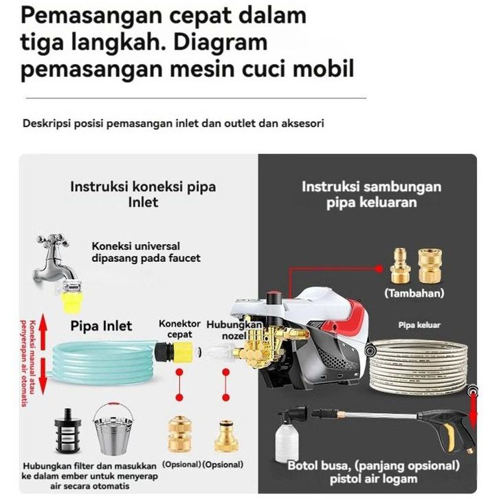 REAIM JET CLEANER ALAT CUCI MOTOR MOBIL HIGH PRESSURE WASHER MESIN STEAM LISTRIK 400BAR 600W PORTABLE MINI
