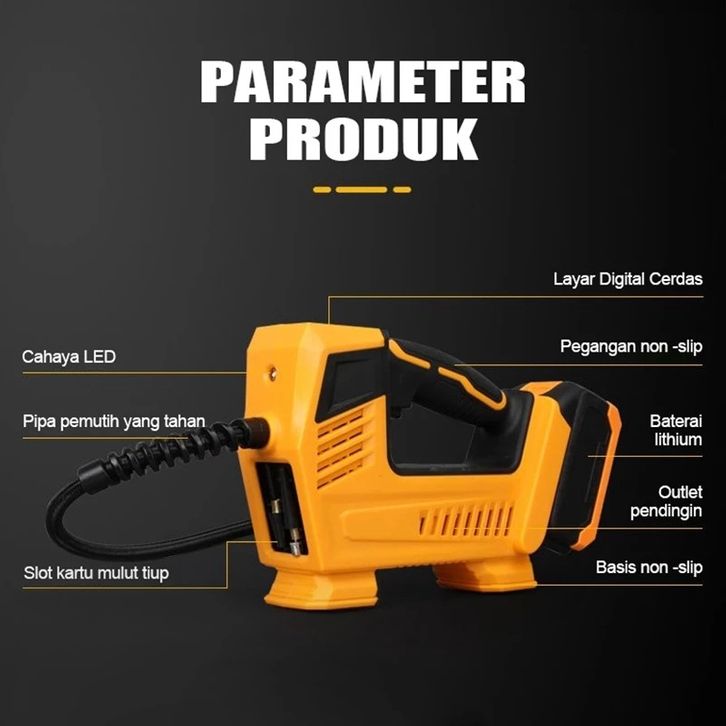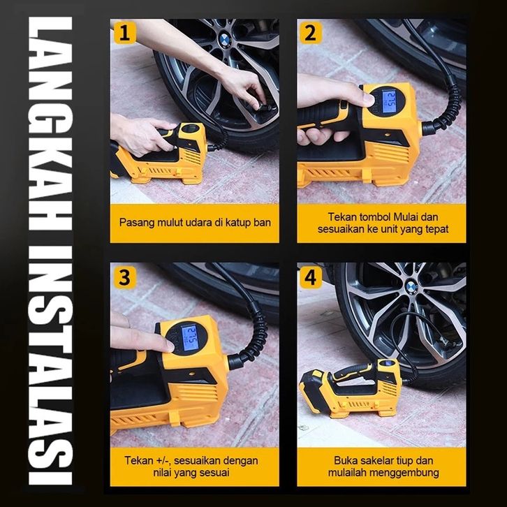 IRONHOOF Baterai Lithium Pompa Ban Mobil Truk Motor Elektrik Cek Tekanan Angin Digital LCD Display Portable Inflator Air