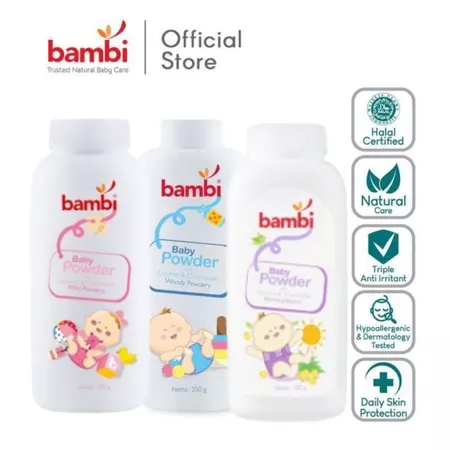 Bambi Baby Powder 250gr | Bedak Bayi Tabur Kulit Normal - Sensitif
