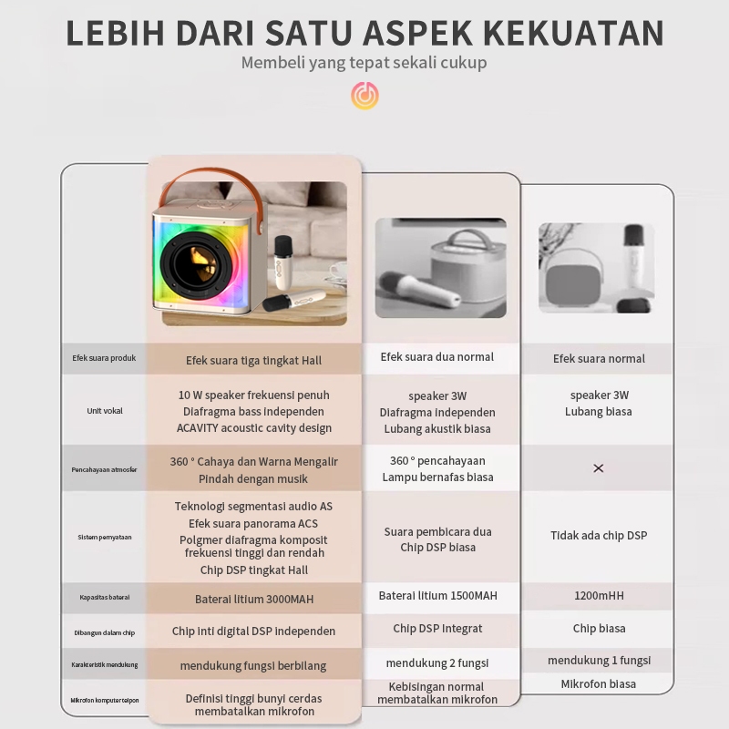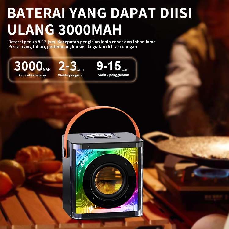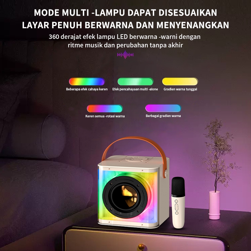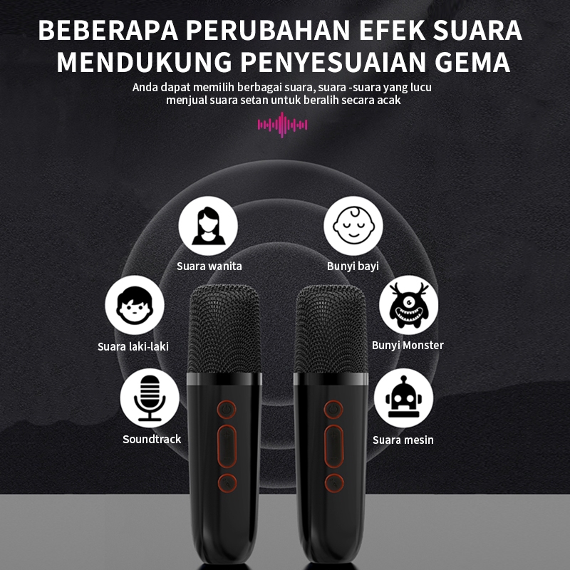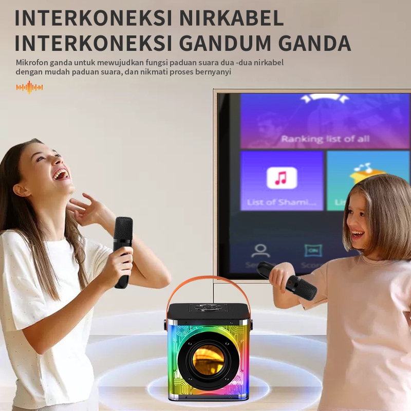 Speaker Bluetooth Karaoke 2 Mic Super Bass Wireless Suara Ajaib Musik Box Full Bass Portable Mini Hi-Fi Audio