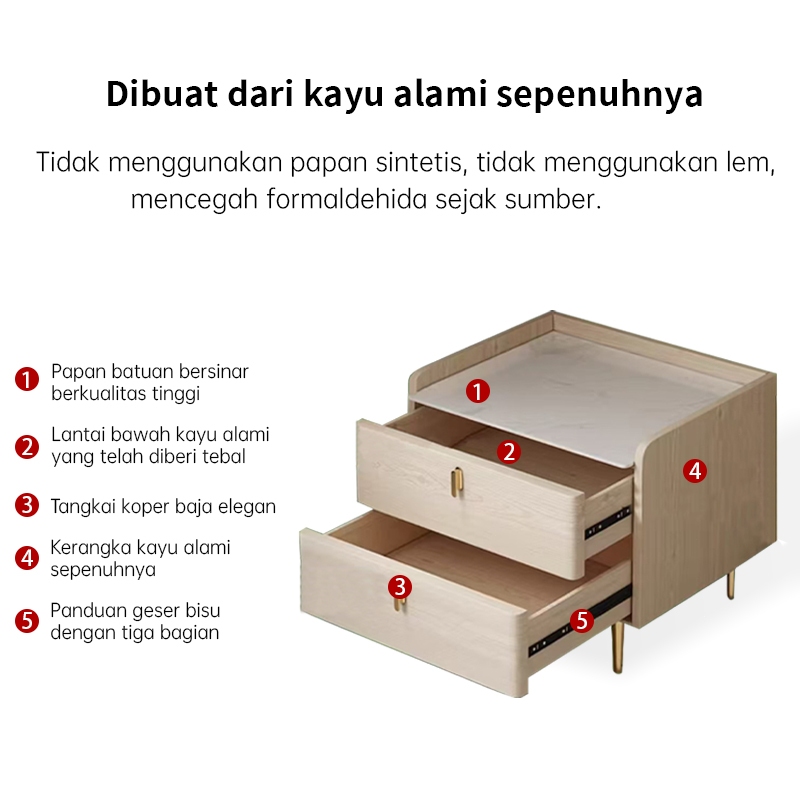 [Mall] Nakas Modern Meja kamar tidur Nakas Minimalis 2 laciNakas kayu Aesthetic Bedside Table Nakas 53cm