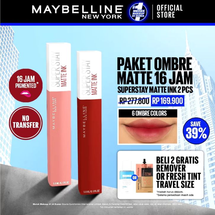 [Mall] LIPSTIK MAYBELLINE MATTE Superstay Ink 2 Pcs Ombre Set Lipstick - Long Lasting Waterproof Official Store Lipcream