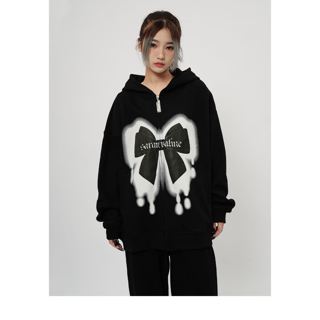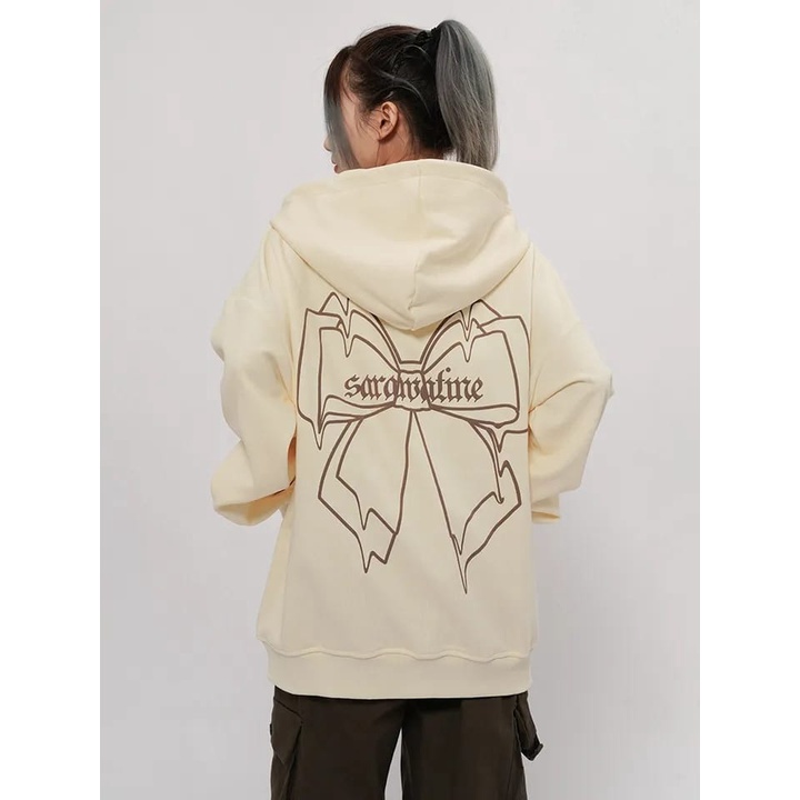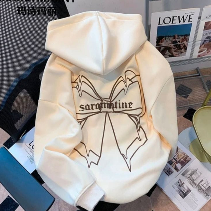Vallina - Saramatine Ribbon Zip Hoodie Jacket Outerwear Remaja Wanita Korean Style Premium - Pita Samaratine