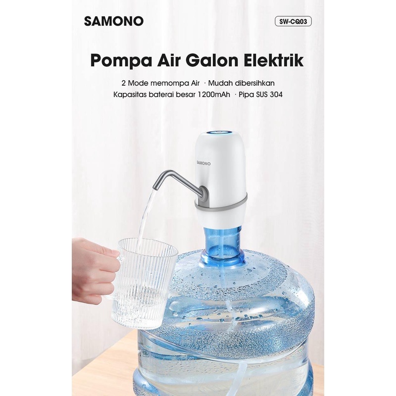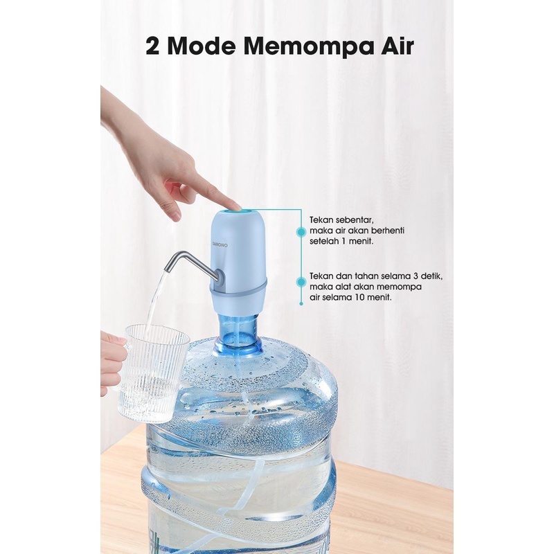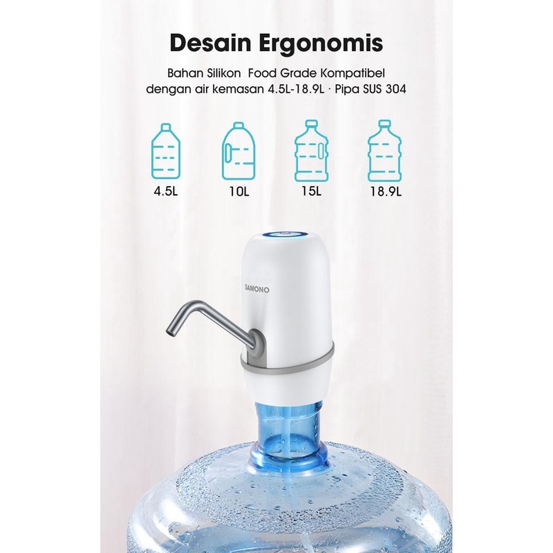 SAMONO Pompa Galon Electric Pompa Air Galon Elektrik SW-CQ03 Putih Biru sekali sentuh