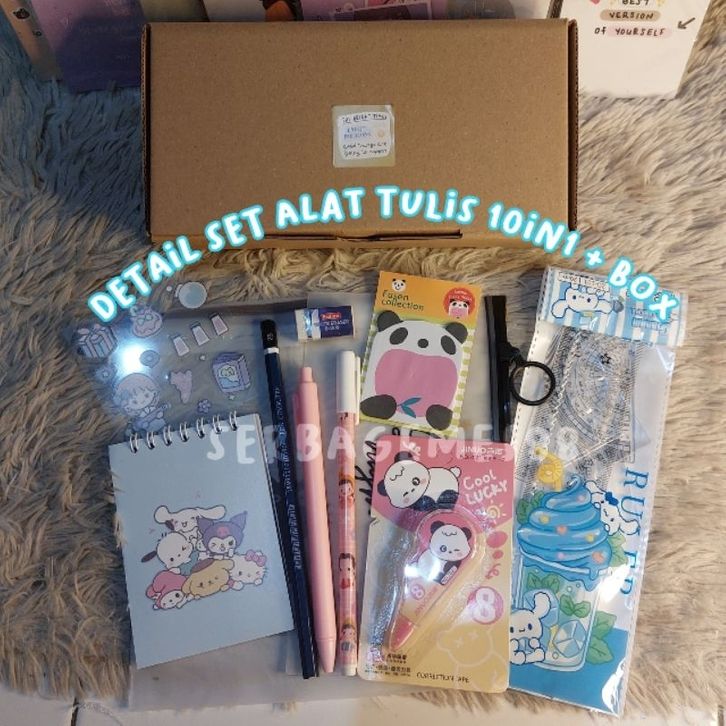 serbagemes88 - SET ALAT TULIS 10 IN 1 LENGKAP / STATIONERY UNTUK SOUVENIR HADIAH / HAMPERS KADO GIFT SEKOLAH / HAMPERS