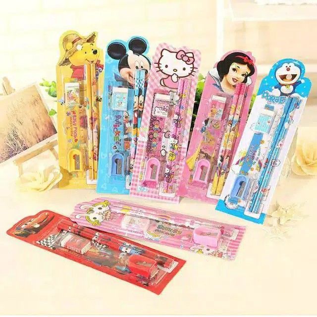 STATIONERY MINI SET ALAT TULIS SEKOLAH KARAKTER 5IN1 / ALAT SET TULIS ANAK KARAKTER LUCU/ALAT TULIS PRAKTIS