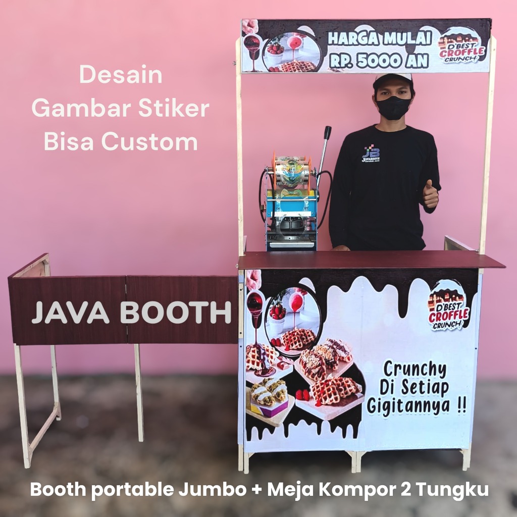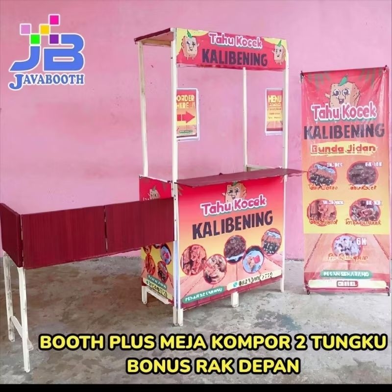 TERLARIS Booth Portable / Gerobak Lipat / Meja Lipat / Furniture Kayu / Bonus Rak Depan / Meja Kompor 2 Tungku