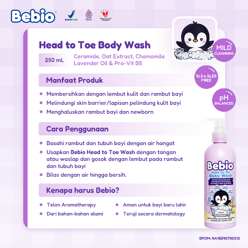 BEBIO Head To Toe Body Wash - Sabun Shampoo Mandi Bayi 250ml