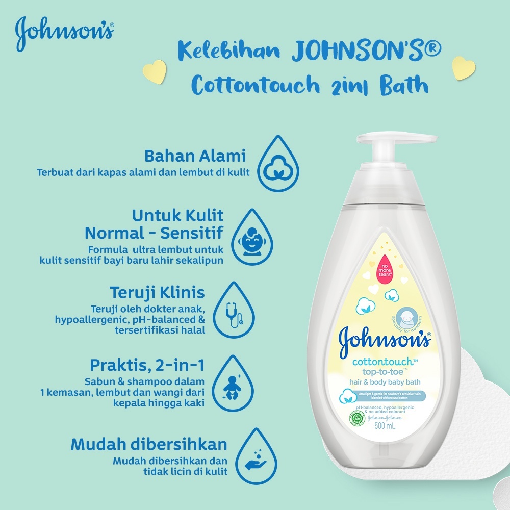 Johnson's 2in1 Cotton Touch Top-to-Toe Hair & Body Baby Bath Sabun dan Shampoo Mandi Bayi