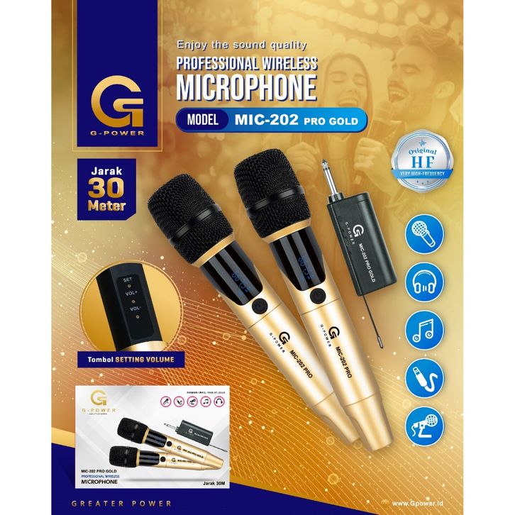 G-POWER Microphone 202 PRO Mic Karaoke Meeting Professional Mic Wireless Charger Lock Frekuensi