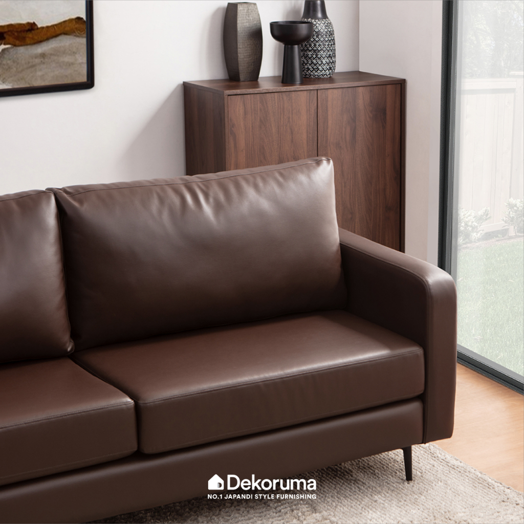 PROMO DEKORUMA TAKA SOFA TAMU KULIT 3 DUDUKAN SOFA 3 SEATER COKELAT TUA