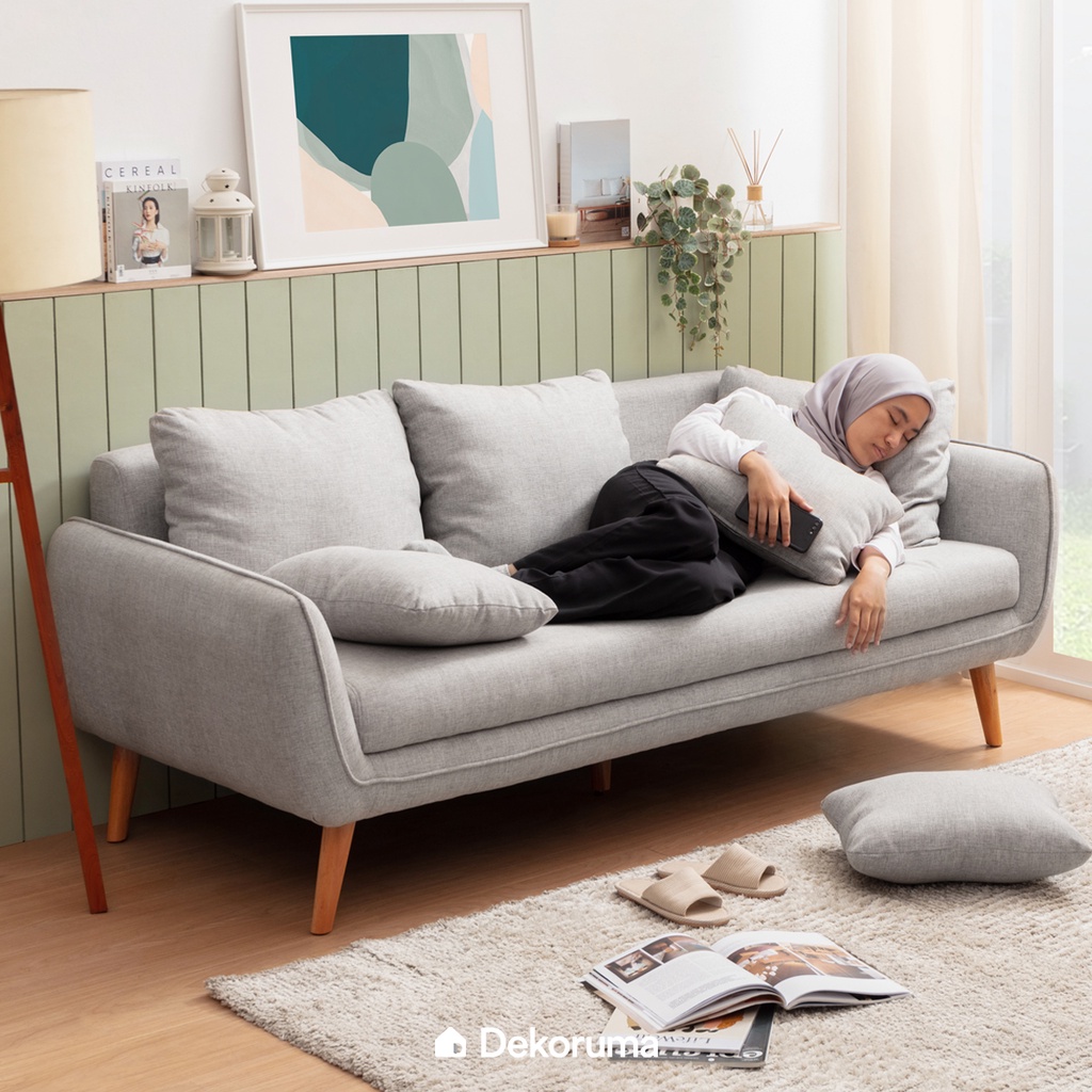 PROMO DEKORUMA HIKI SOFA TAMU MINIMALIS 3 DUDUKAN ABU SOFA 3 SEATER