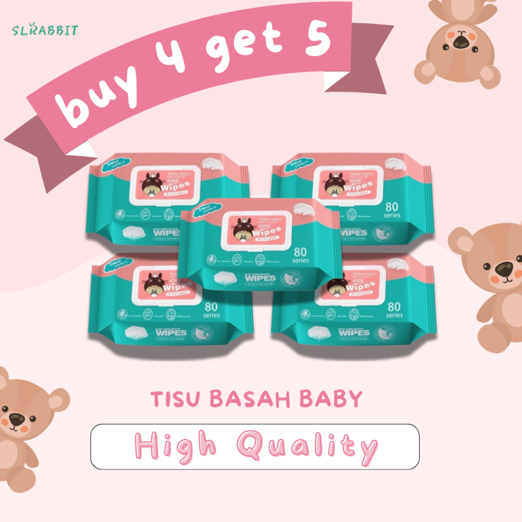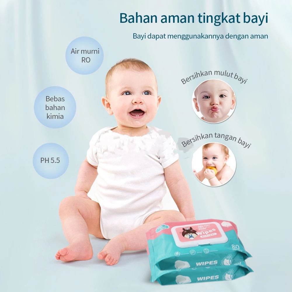 Beli 4 Gratis 1 MURAH Tisu Basah Bayi Newborn Untuk Bayi Ganti Pampers Popok Baby Wipes isi 80 Lembar / Tisu Traveling