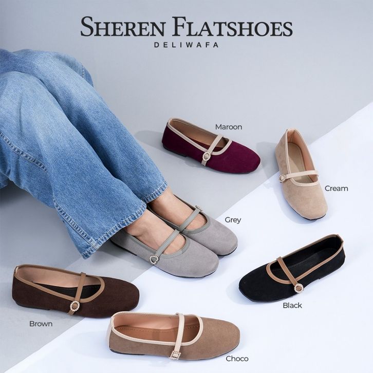 PROMO Deliwafa - Sheren Flatshoes | Fashion Wanita | Pointed Toe | Sepatu Kerja
