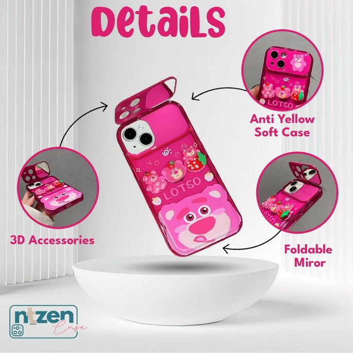 Case Iphone MIRROR SHOCKPROFF BEAR, LOTSO, KUROMI 11 12 13 14 PRO MAX XR XS 15