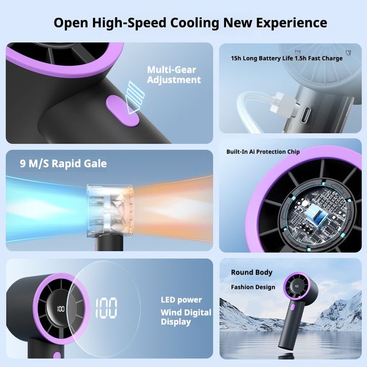 Kipas Angin Mini Portable Usb 10000mAh Mini kipas Angin Turbo / Adjustable 5-Speed Wind LED Display HF01