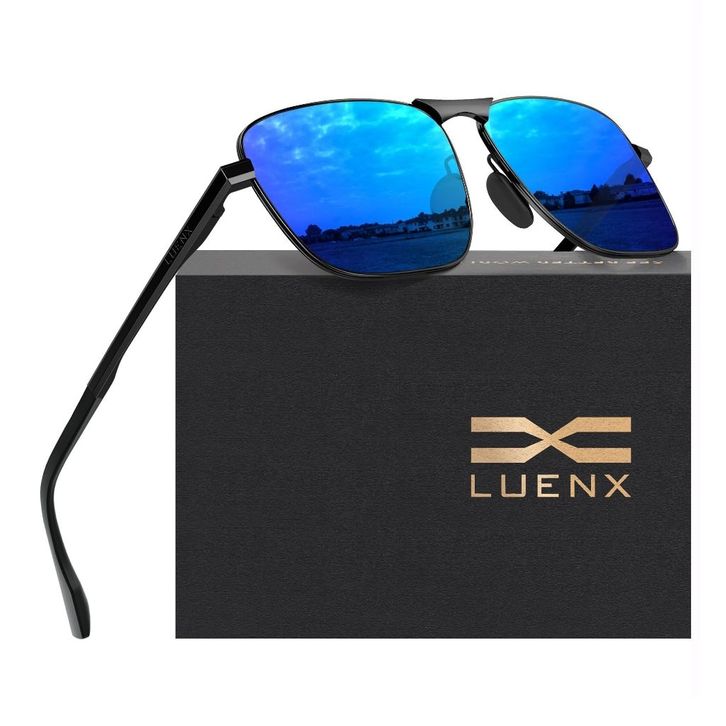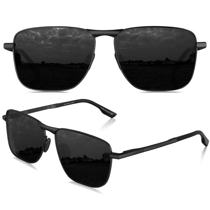 LUENX Kacamata Hitam Rectangular Polarized Aviator Sunglasses Unisex Retro Pilot Shades Driving UV400 Protection 6405-1