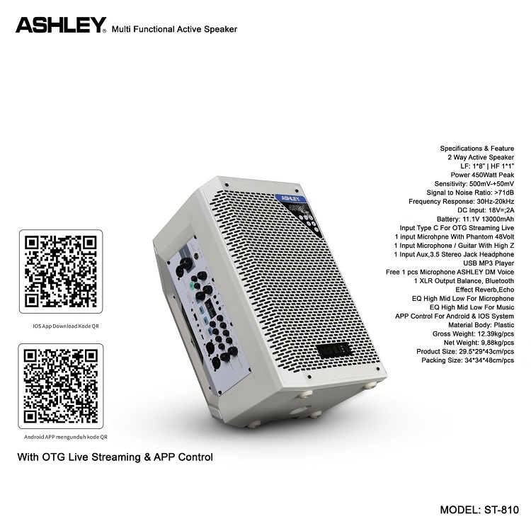 speaker aktif ashley st810 st 810 bonus stand speaker original