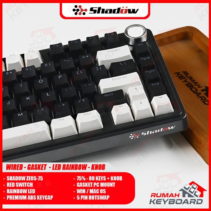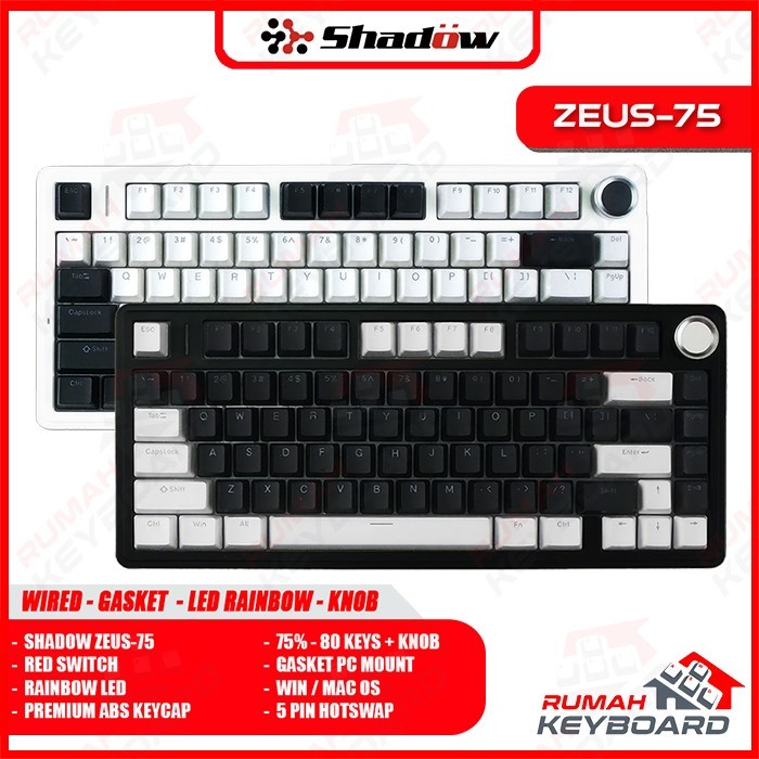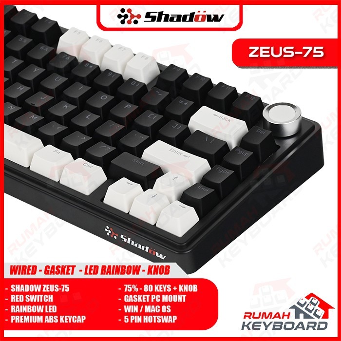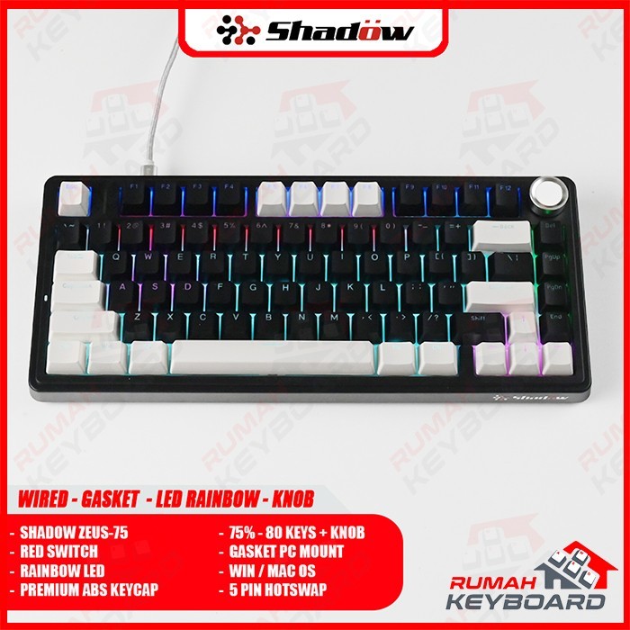 SHADOW X AULA ZEUS75 75% Compact Wired Gasket Mount Rainbow LED ABS Shine Through Mekanikal Keyboard gaming