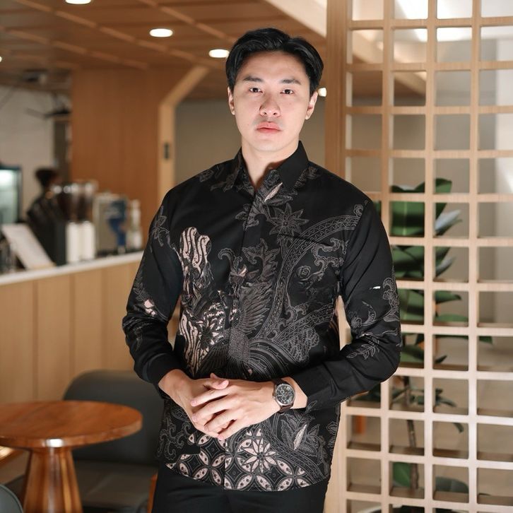 Batik Kresna Pria Lengan Panjang Motif Laksmana Hitam Katun Baju Atasan Formal Kondangan Lamaran