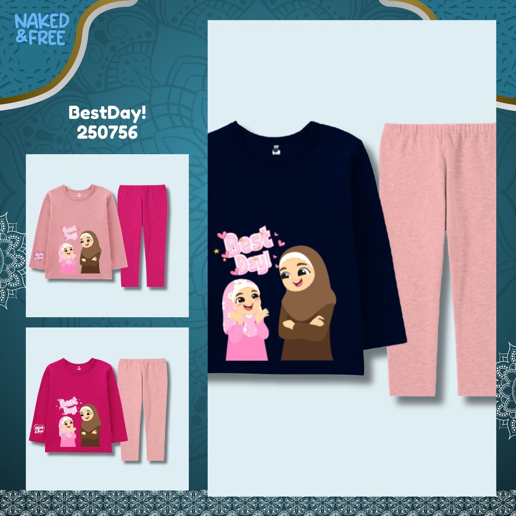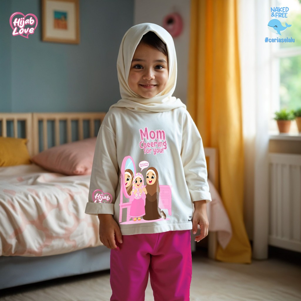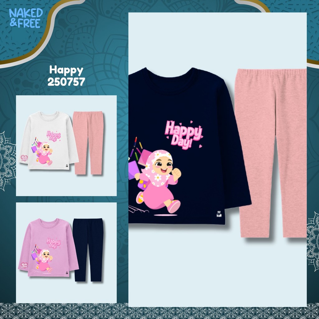 NAKED & FREE SETELAN KAOS HIJAB ANAK PEREMPUAN HIJAB LOVE SERIES HAPPY BEST DAY BAHAN KATUN HIJ-1