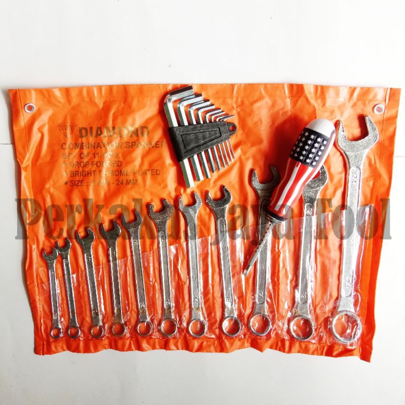 Paket Kunci Ring Pas Set 11 pcs + Obeng Bolak Balik Amerika + Kunci L