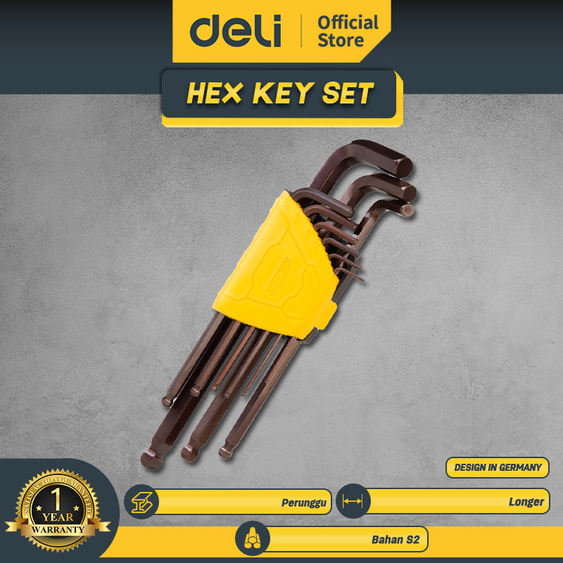 Deli Hex Key Sets/ Set Kunci L 9Pcs Ujung Bola 1.5-10mm Metal DL230X09