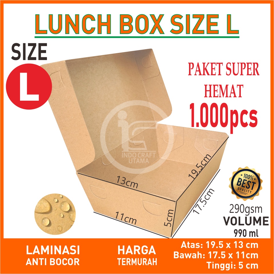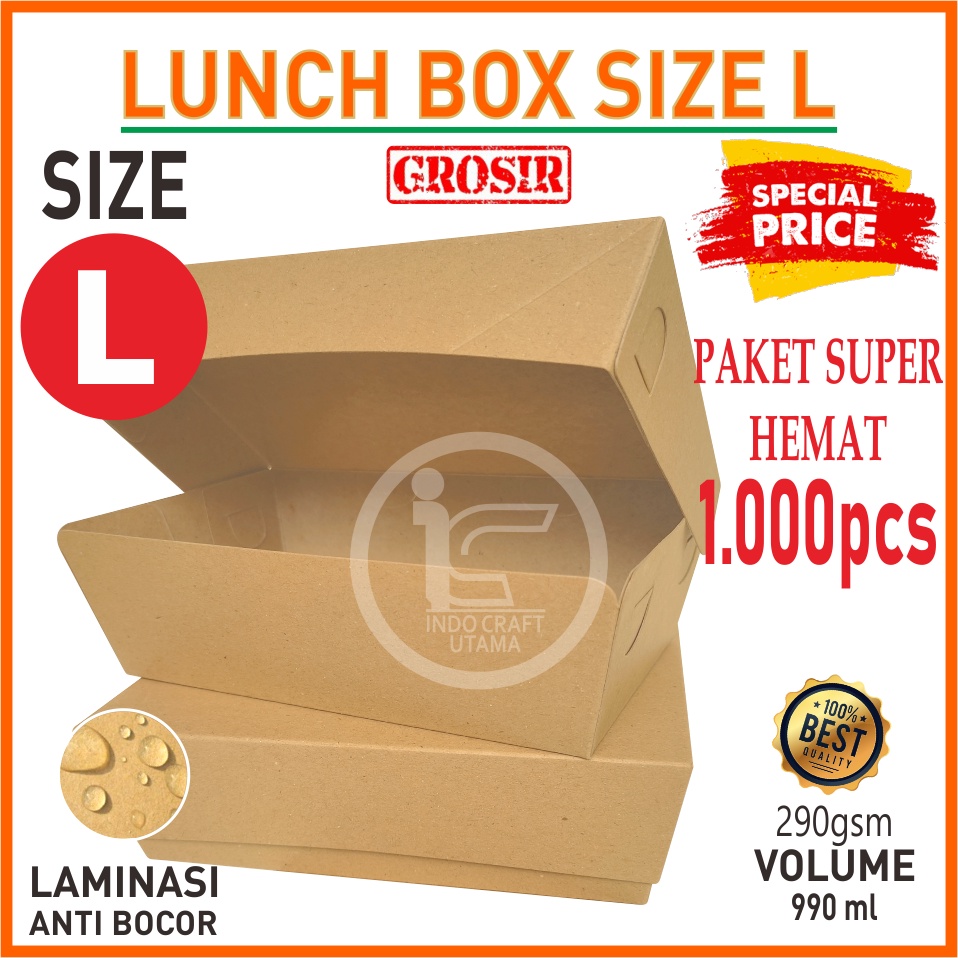 Lunch Box Size L 1000 pcs Kotak Makan Kertas Brown Paper Box Makanan Dus Kraft Laminasi Craft Grosir Paket Hemat 1.000pc