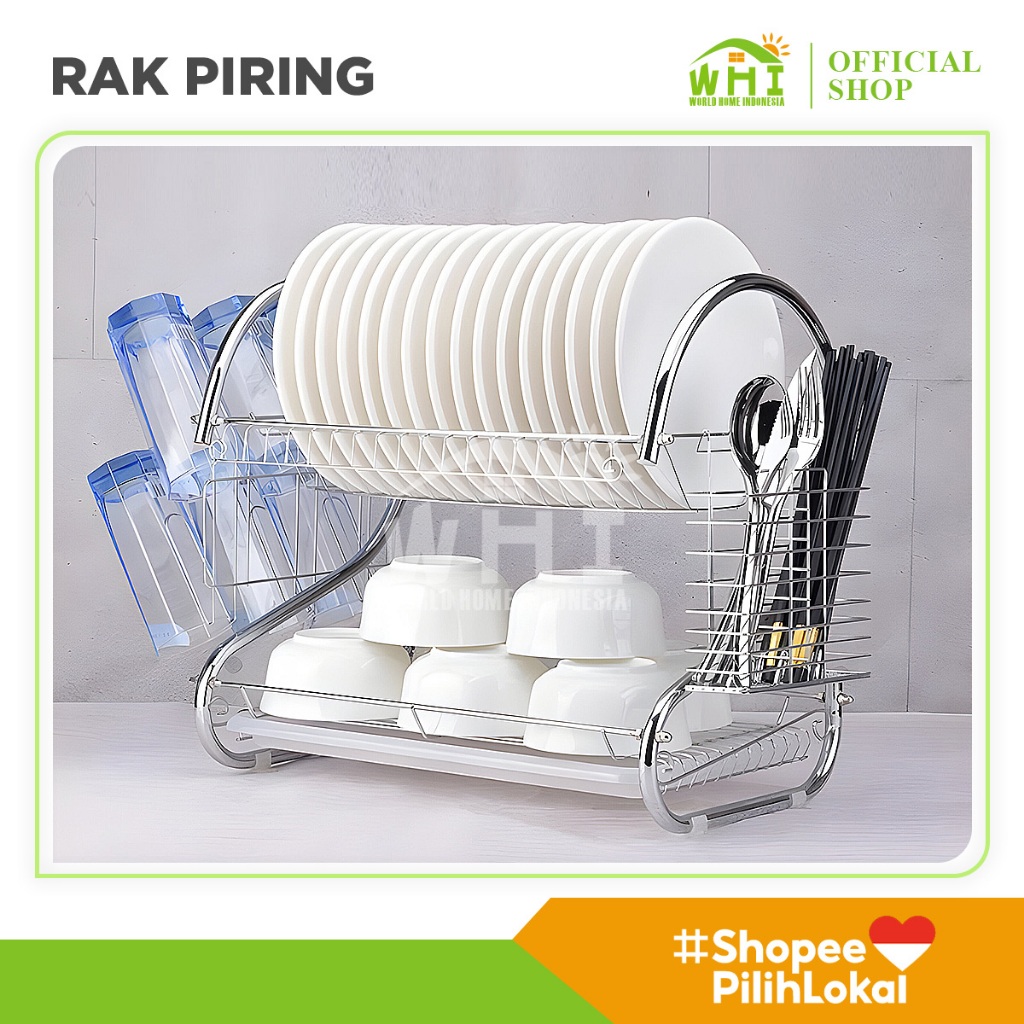 Rak Piring Stainlees 2 Tingkat Rak Piring Minimalis Rak Dapur Stainless Steel Dish Rack World Home