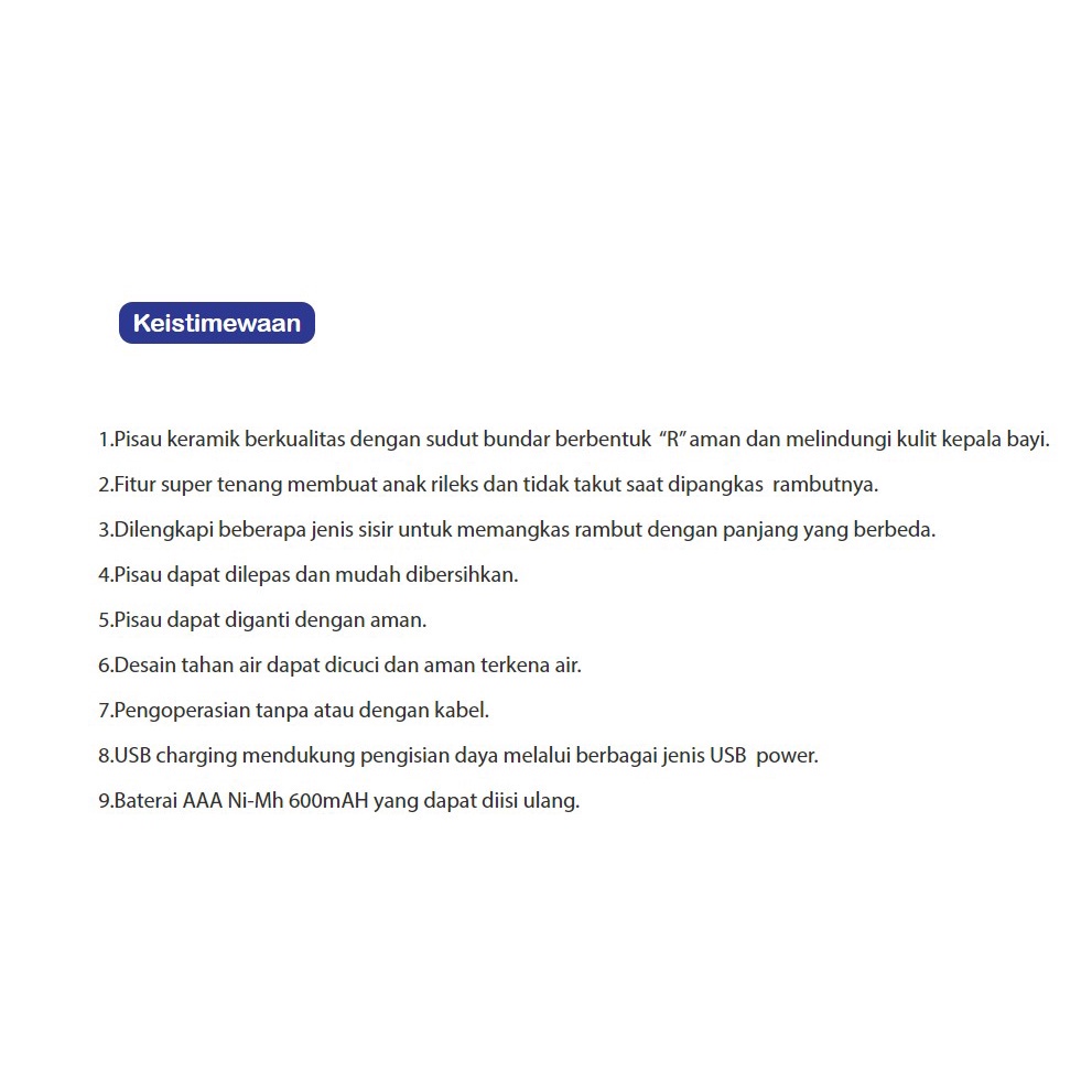 Baby Safe HT001 Baby Hair Trimmer Alat Pencukur Rambut Bayi Anak