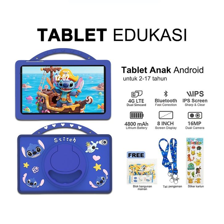 Hancdon Tablet Anti Radiasi Anak F16 8GB+256GB 8.1inch Layar Tablet Dual Sim Card 4G LTE Tablet Anak Android Belajar Tab