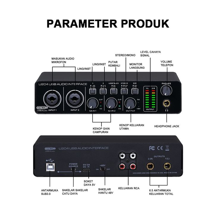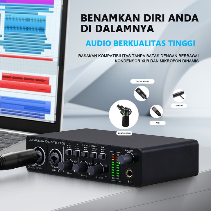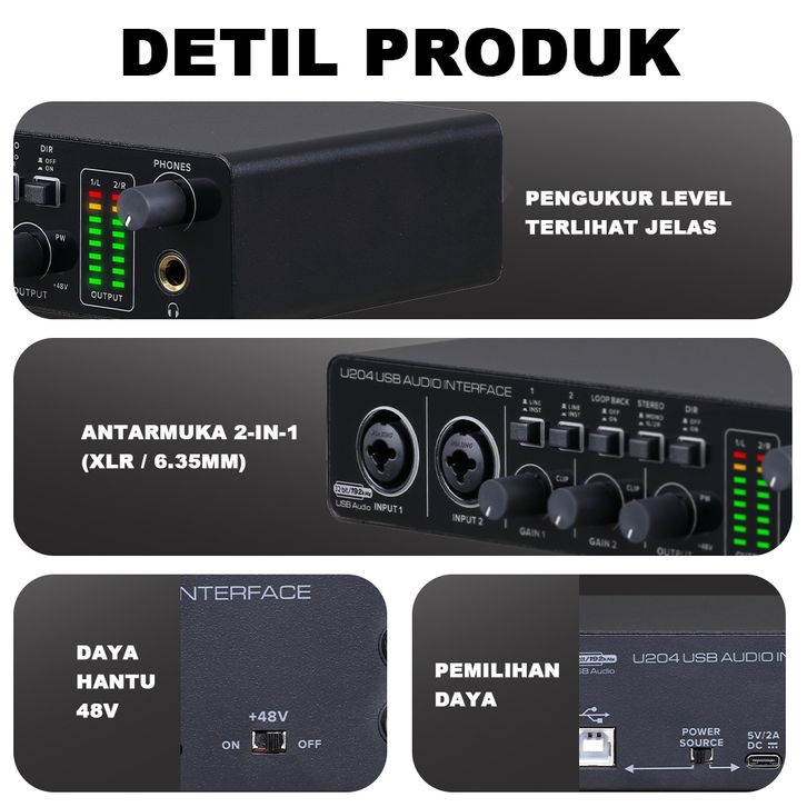BOMGE U204 USB Audio Interface Performance Mixer & Recording Interface Mic Preamplifier XLR/TSR/TS Ports, Compatible for