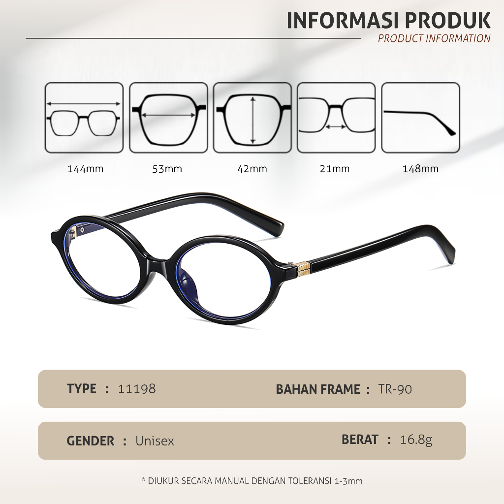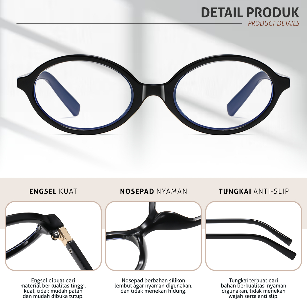 Colore.in Kacamata Retro Photocromic Minus Anti Blueray Bluecromic Anti Silau Oval TR-90 Frame 11198