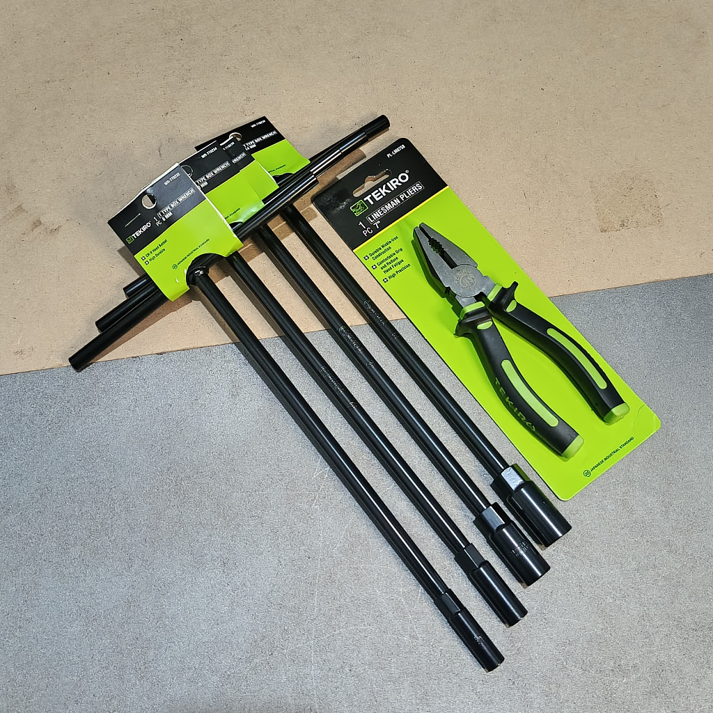 TEKIRO Paket Lengkap Kunci Sok T 8-10-12-14mm + Tang Kombinasi 7Inci + Kunci L Set 8pcs