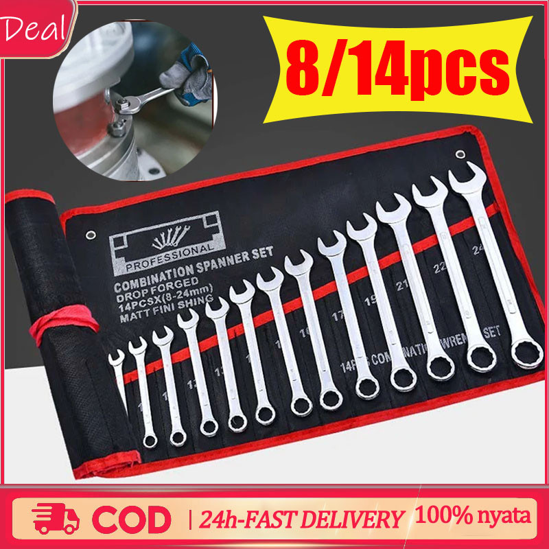 kunci shock set/kunci set lengkap/8/10/12 /14 PCS 8-24mm Kunci Pas Barang Berkualitas Original Spanner Sets