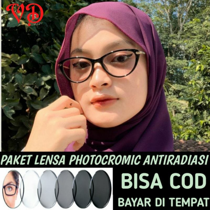 Frame KacamaTa Cat Eye Photocromic Free Box + Lap Lensa Anti RadiasI KomputEr | Anti UV KacamaTa | KacamaTa Cewek Photoc