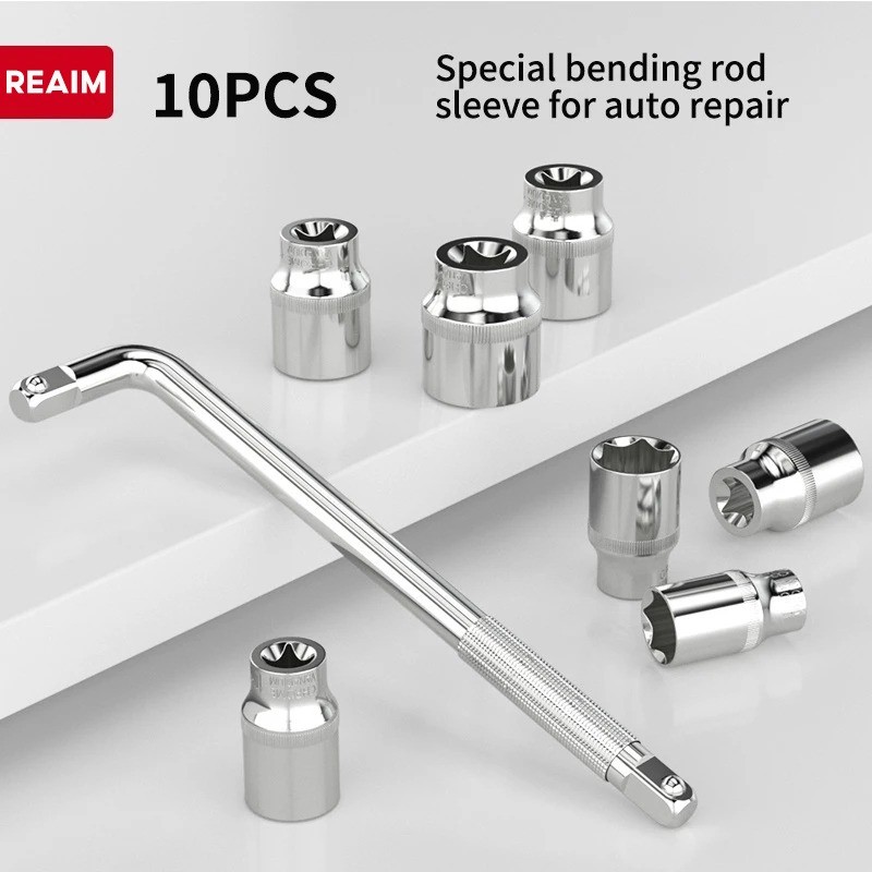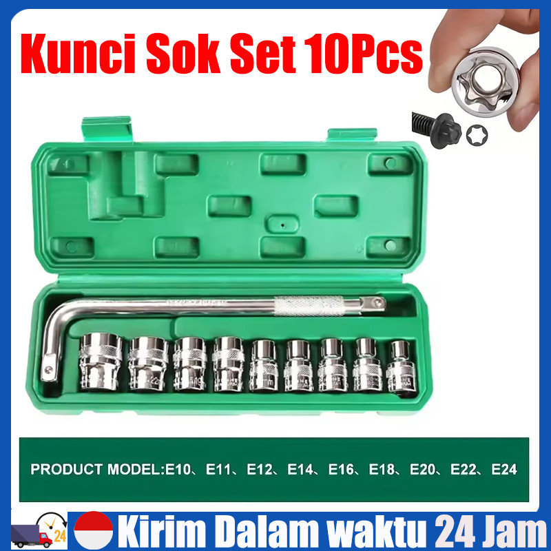 【Stok Tersedia】Kunci Shock L Set 10PCS 8-24mm Mata Sock Set 1/2 inch 6PT Socket Wrench Set 1/2 Inch Gagang Sock L Tool K