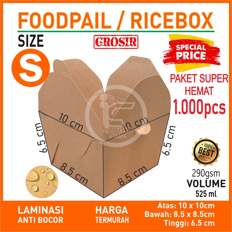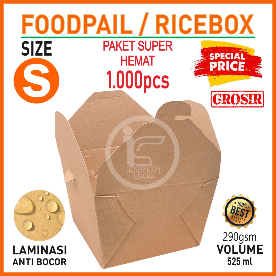 Food Pail Paper Rice Box Paket 1.000 pcs Size S Lunch Box Kertas Dus Makanan Takeaway Kraft Laminasi Foodgrade Grosir Mu