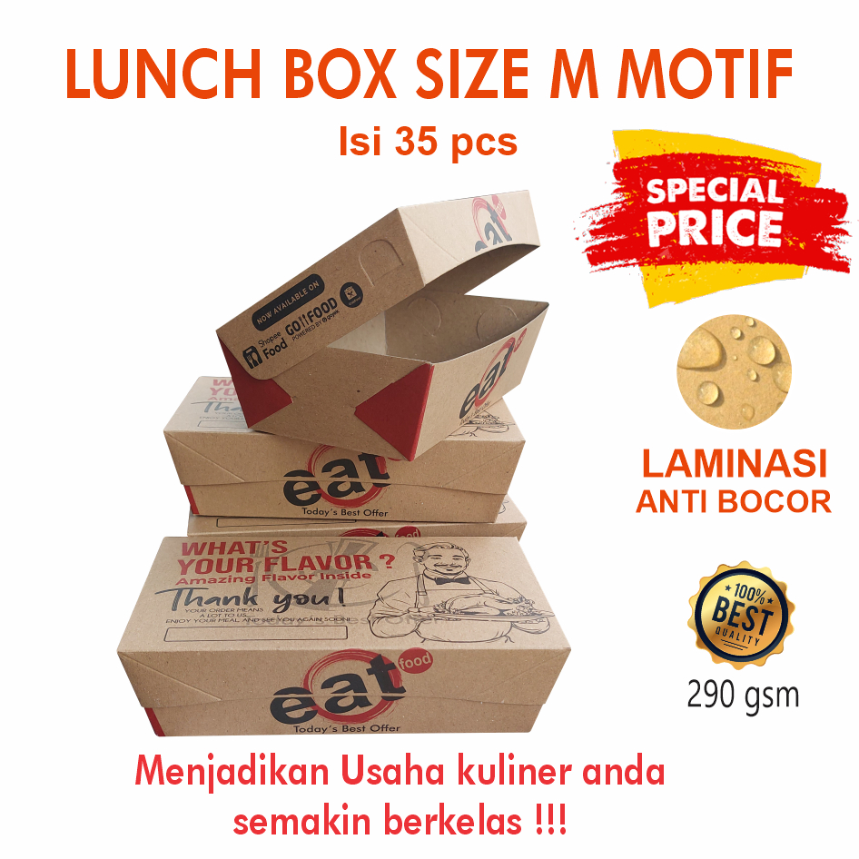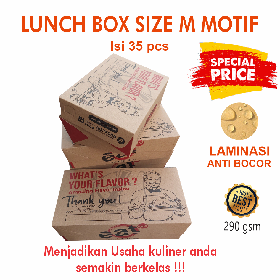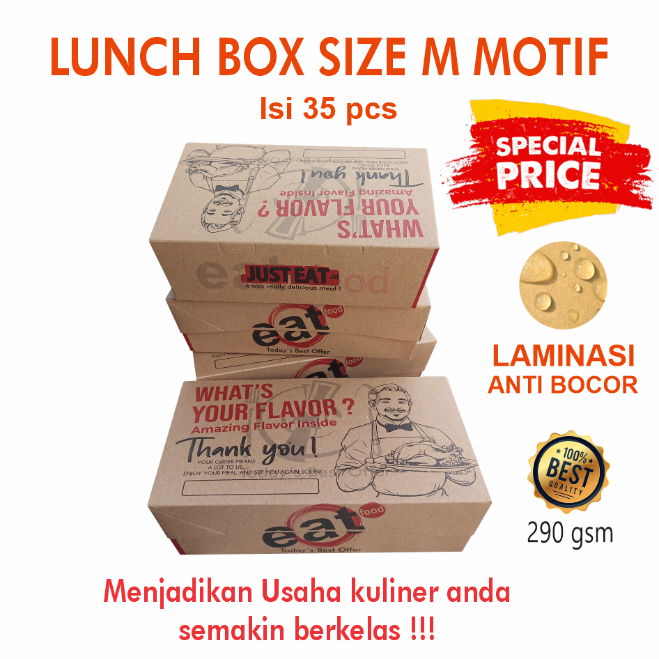 Lunch Box M craft motif koki (isi 35)/Paper Kraft Coklat Cetak Merah Laminasi Ukuran s/m/l Tebal 290gsm Dus Ayam Paket 3