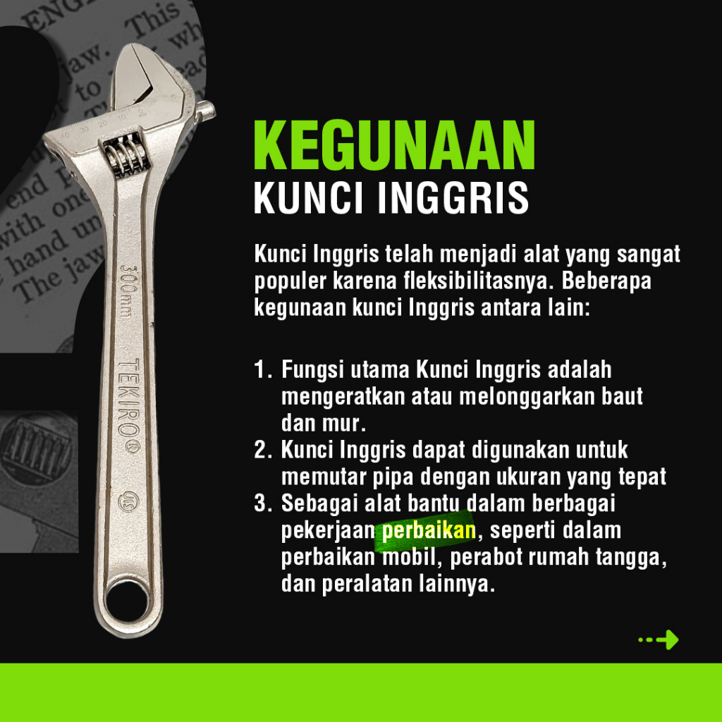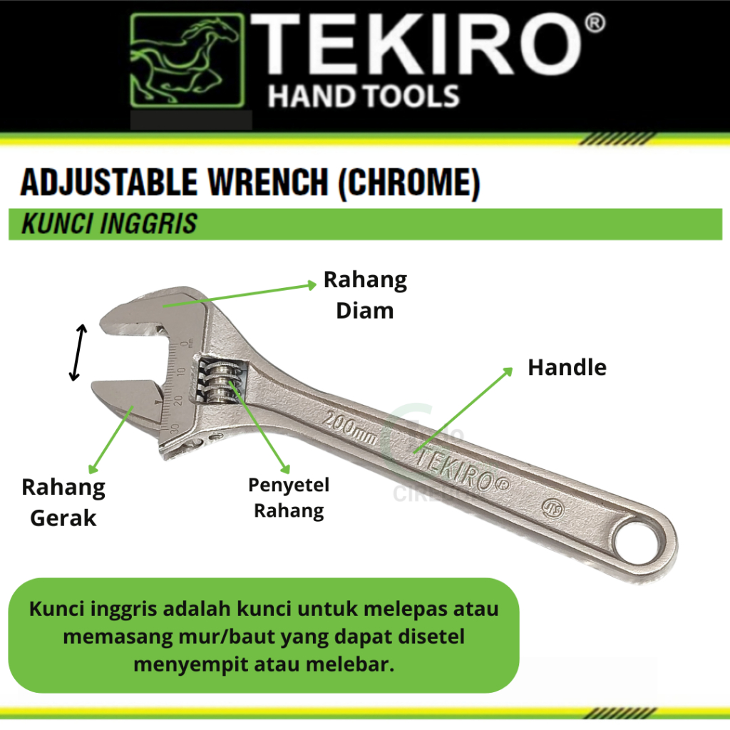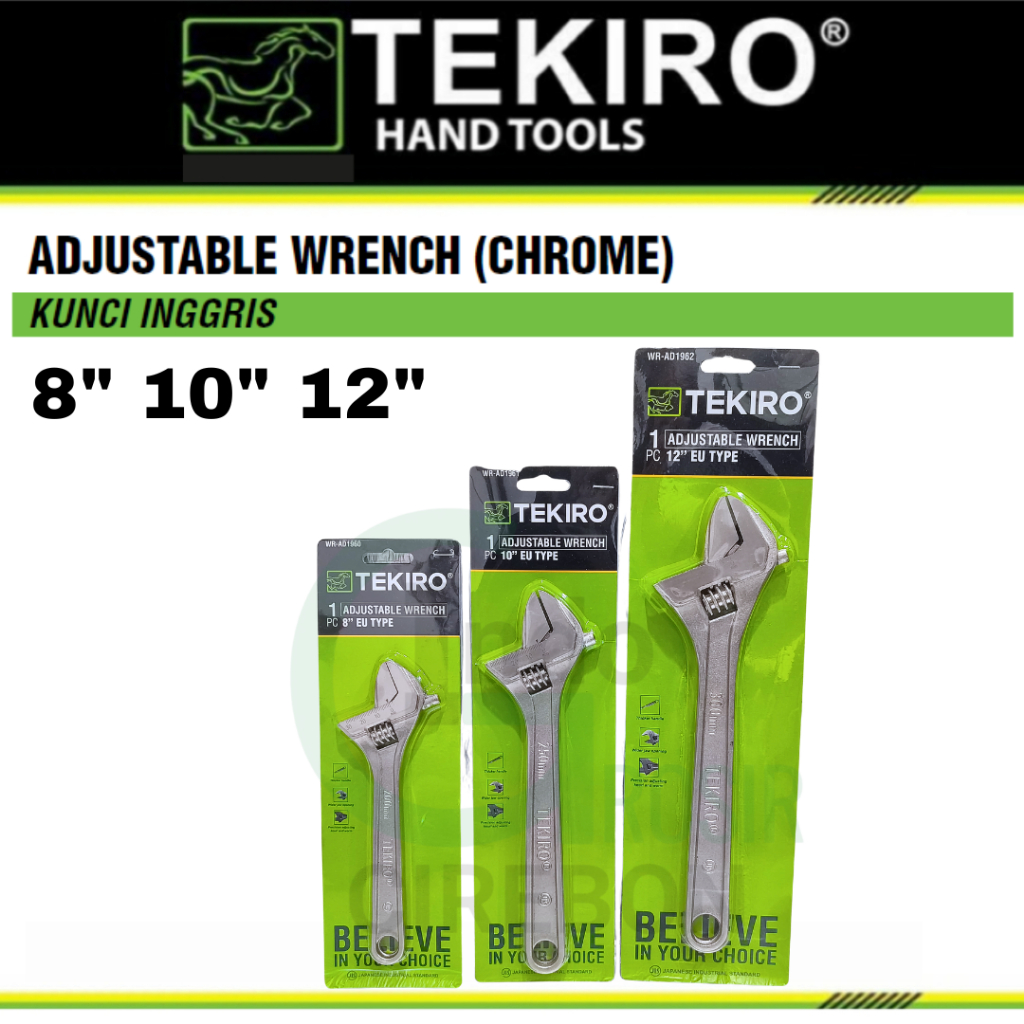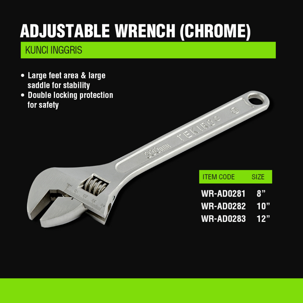 TEKIRO Kunci Inggris 8 10 12 Inch Adjustable Wrench 8" 10" 12" Alat Mengencangkan Melepas Mur Baud