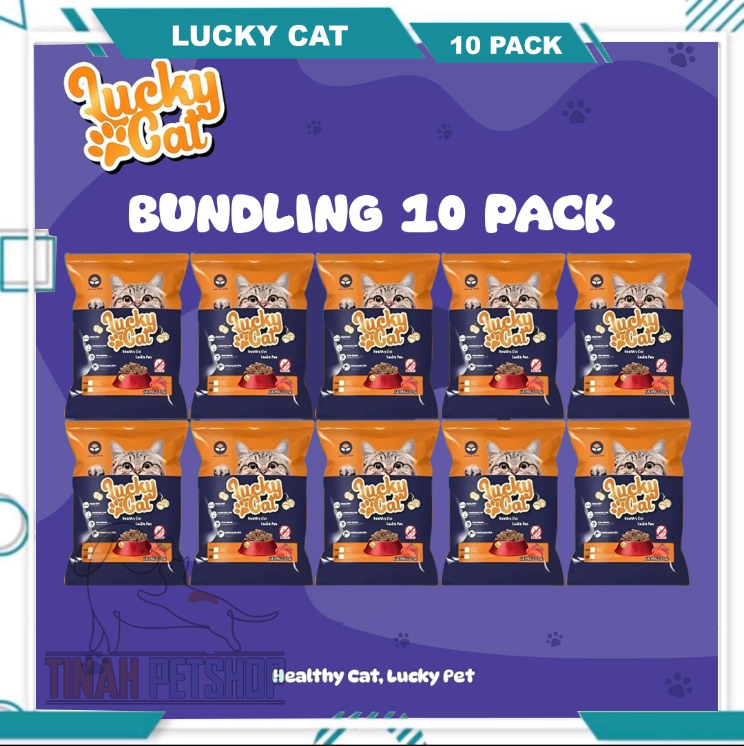 (ISI 10PACK) Lucky Cat Adult Salmon & Tuna / Makanan Kucing Murah - Dry Food Kucing Murah Penggemuk Kucing
