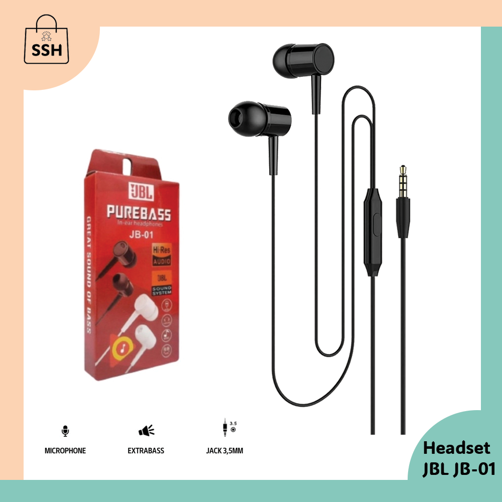 Headset JBL JB01 Earphone Handsfree In Ear HF JB-01 Purebass Hedset Kabel