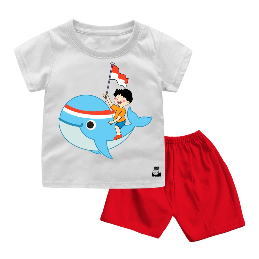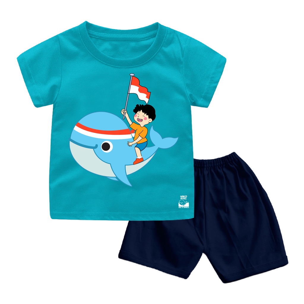 NAKED & FREE SETELAN KEMERDEKAAN BAYI & ANAK SERI WHALE INDEPENDENCE BAHAN KATUN COMBED 30S