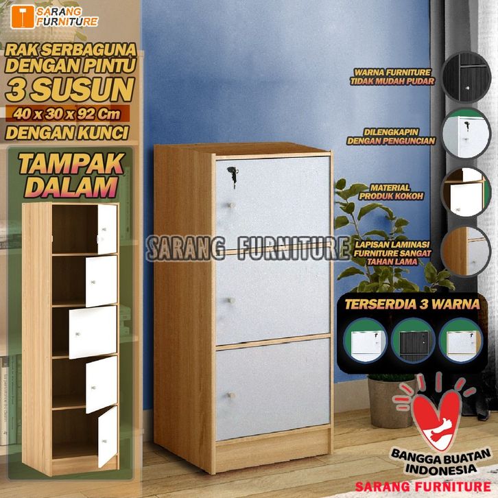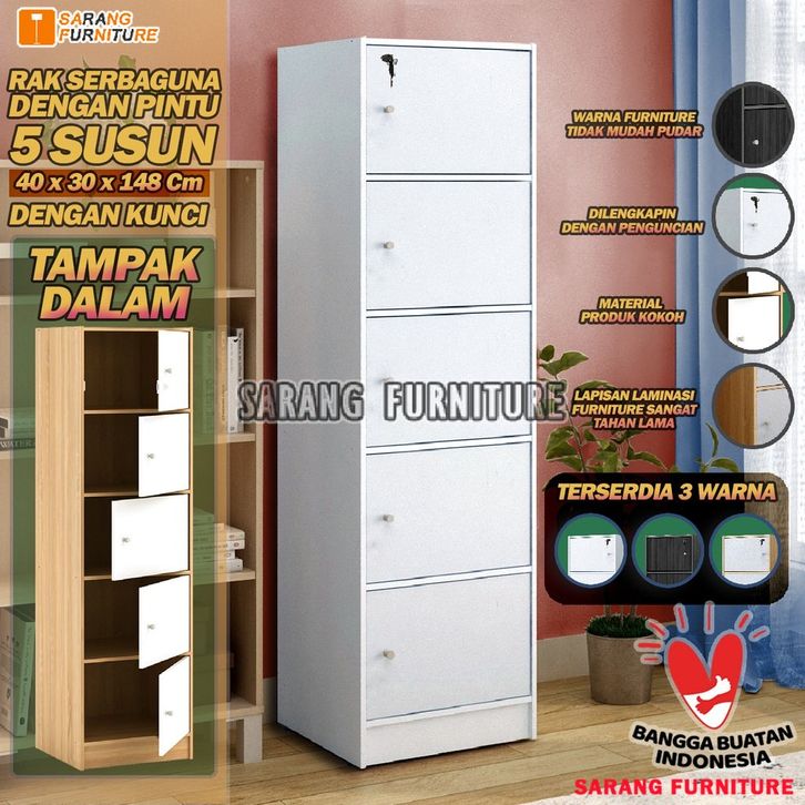LEMARI RAK BUKU SEAA SUSUN 3 SUSUN 4 SUSUN 5 SUSUN KAYU DENGAN KUNCI MURAH RSG TU