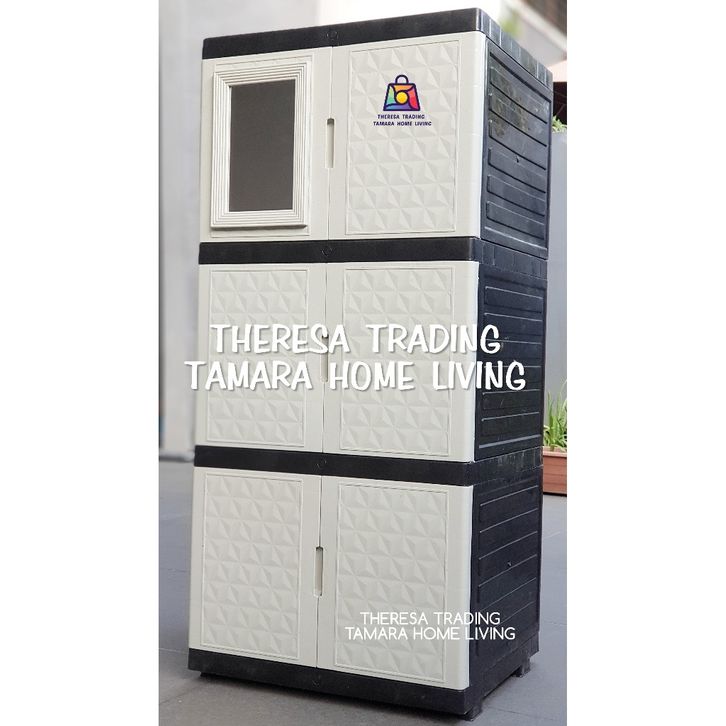 LEMARI PLASTIK SEA A DIAMOND KACA CERMIN 3 SUSUN 3 DESN PREMIUM