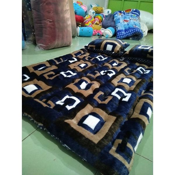 SUPER QUALITY Kasur Lantai BULU MOTIF KOTAK 1X14X1cm FREE 2bantal