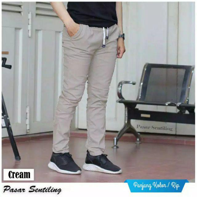 (Gratis Ongkir) CELANA Pria SLIMFIT Panjang chino KERJA HARIAN HITAM MOCCA ABU CREAM