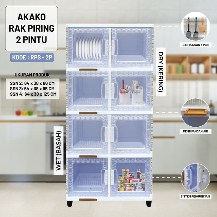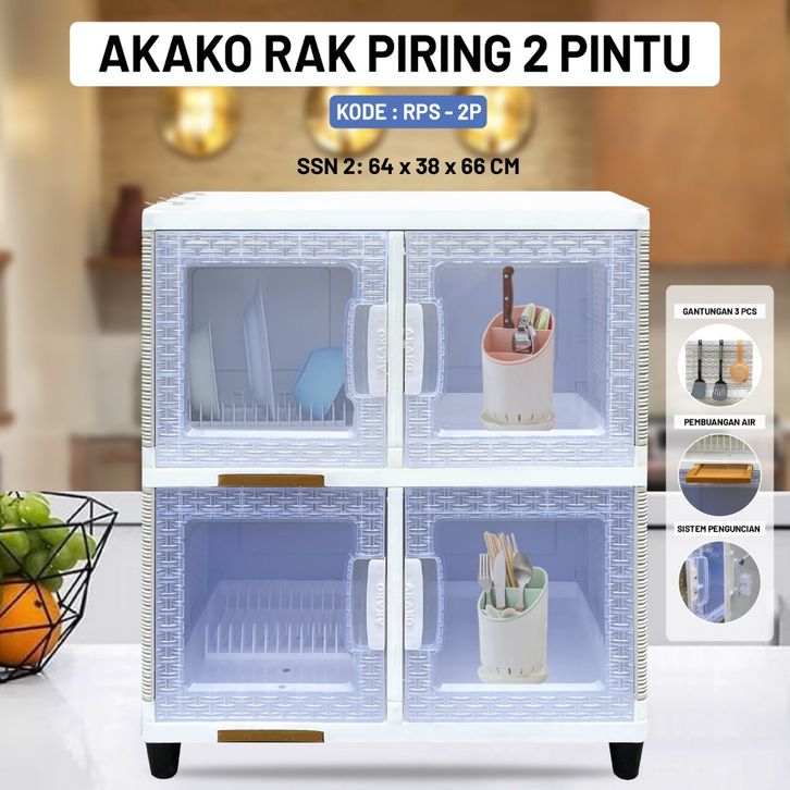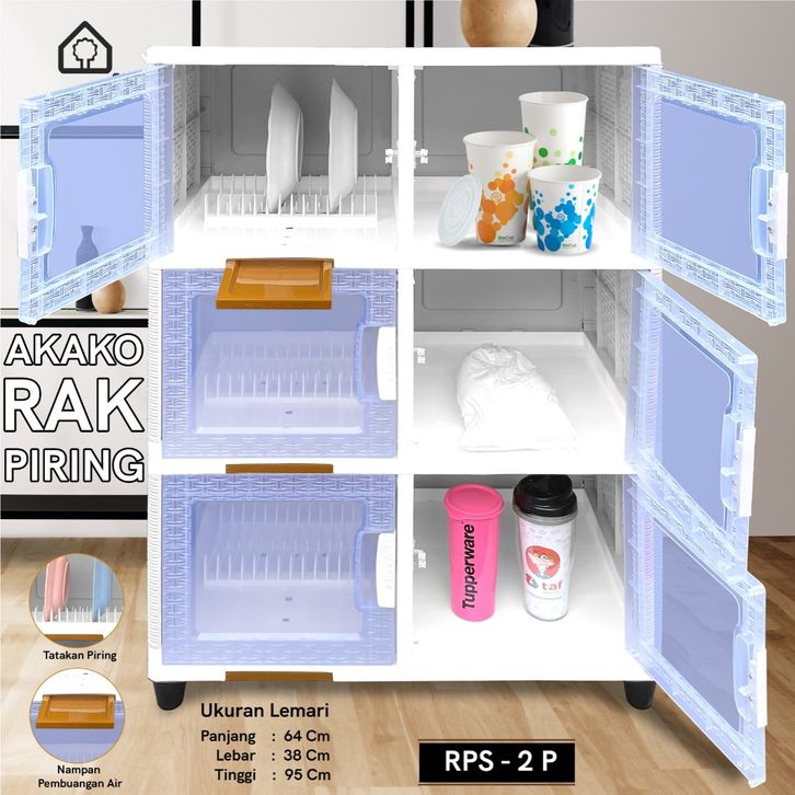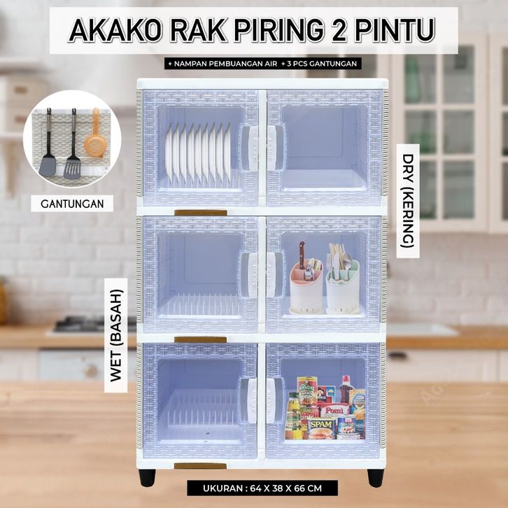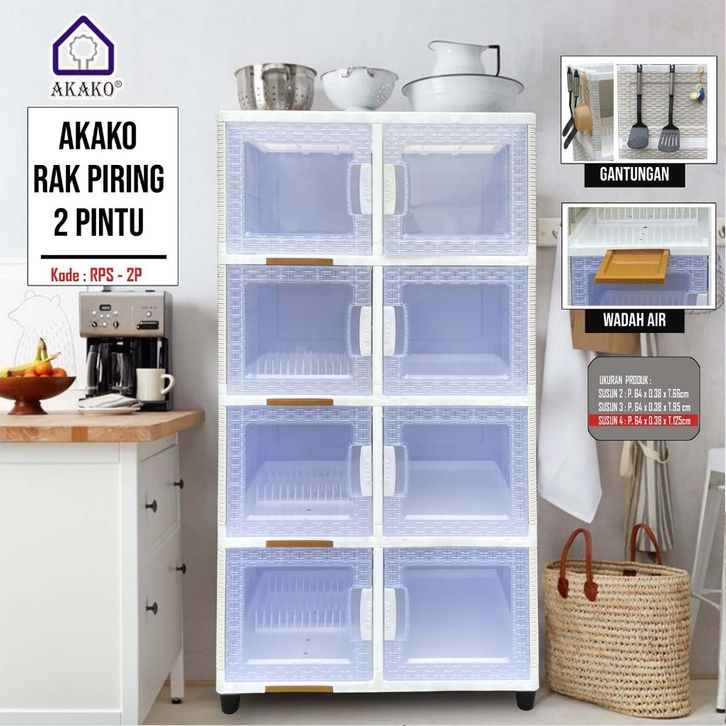 AKAKO - Lemari Rak Pi 2 tu + Nampan + Kaca Transparan Susun 2, 3, dan 4 KODE S-2P