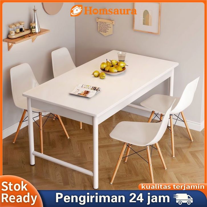 Homsaura Meja Makan Set 4 Kursi/Kayu/Kaki Besi/ern/Minimalis